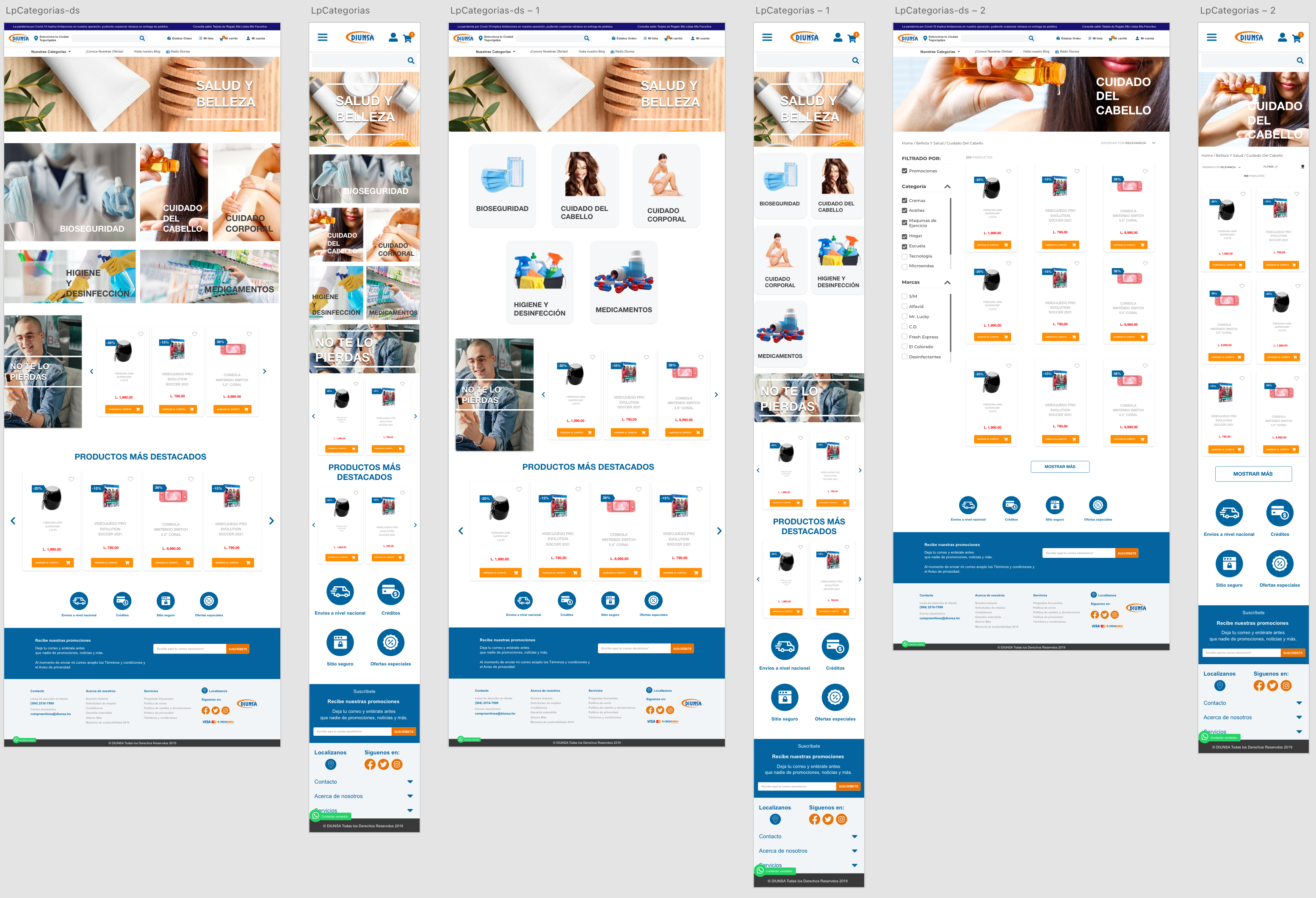 Propuesta UI para las categorías XD Landing Diunsa Categorías |