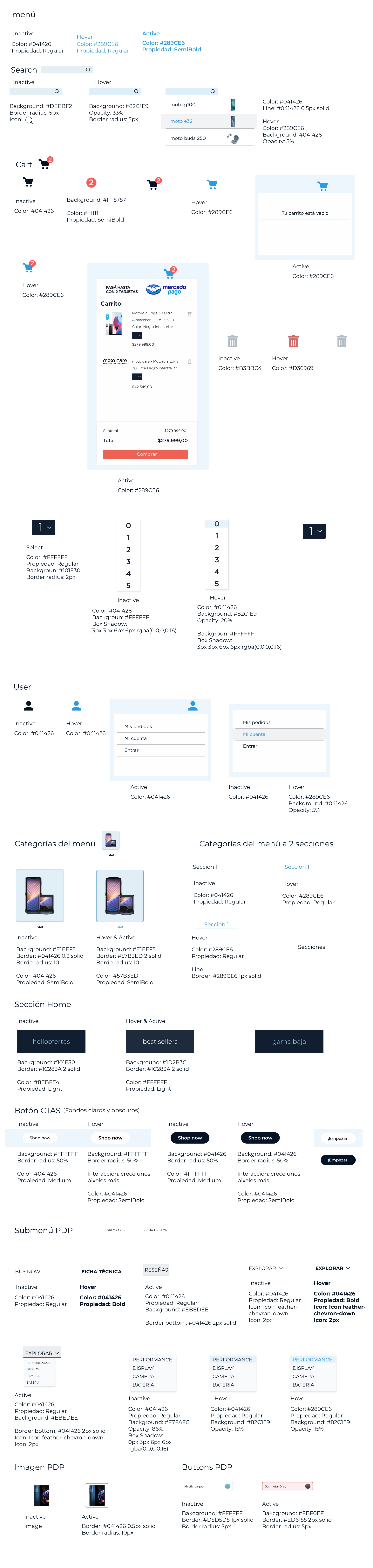 Creación de ciertos elementos con base a la metodolgía Atomic Design. Cree los atomos, moléculas y organismos para las mejores prácticas con el área de desarrollo. XD Metodología Atomic Desgin Motorola |