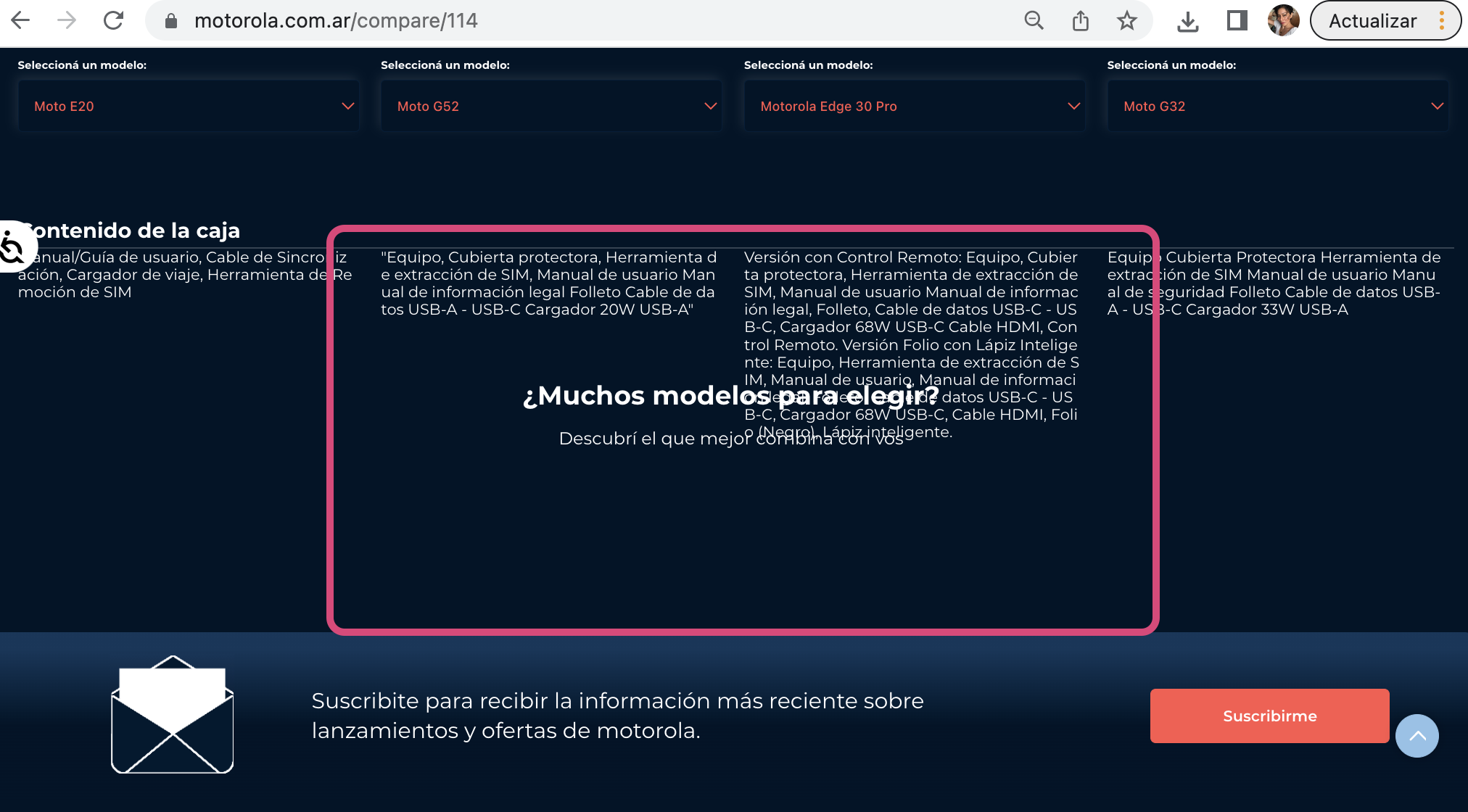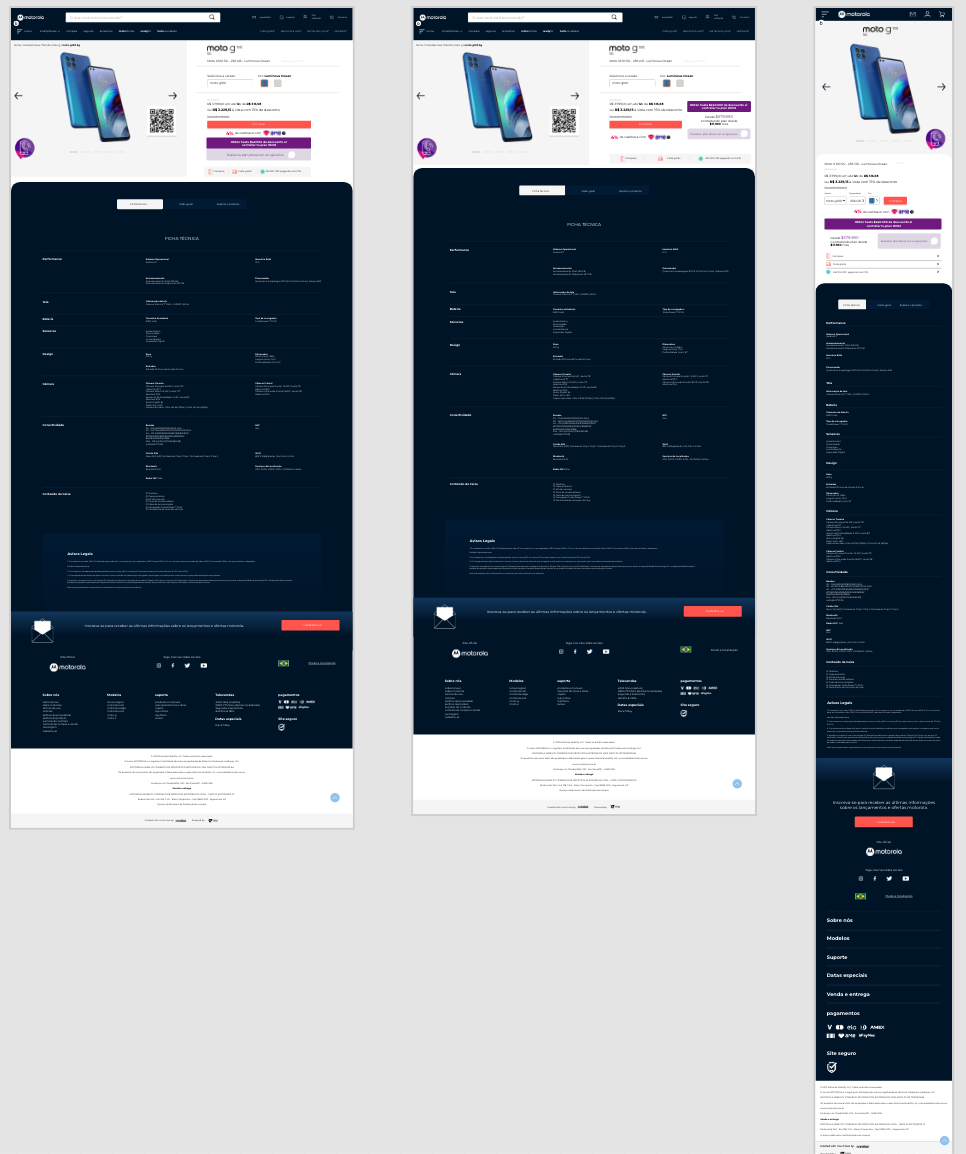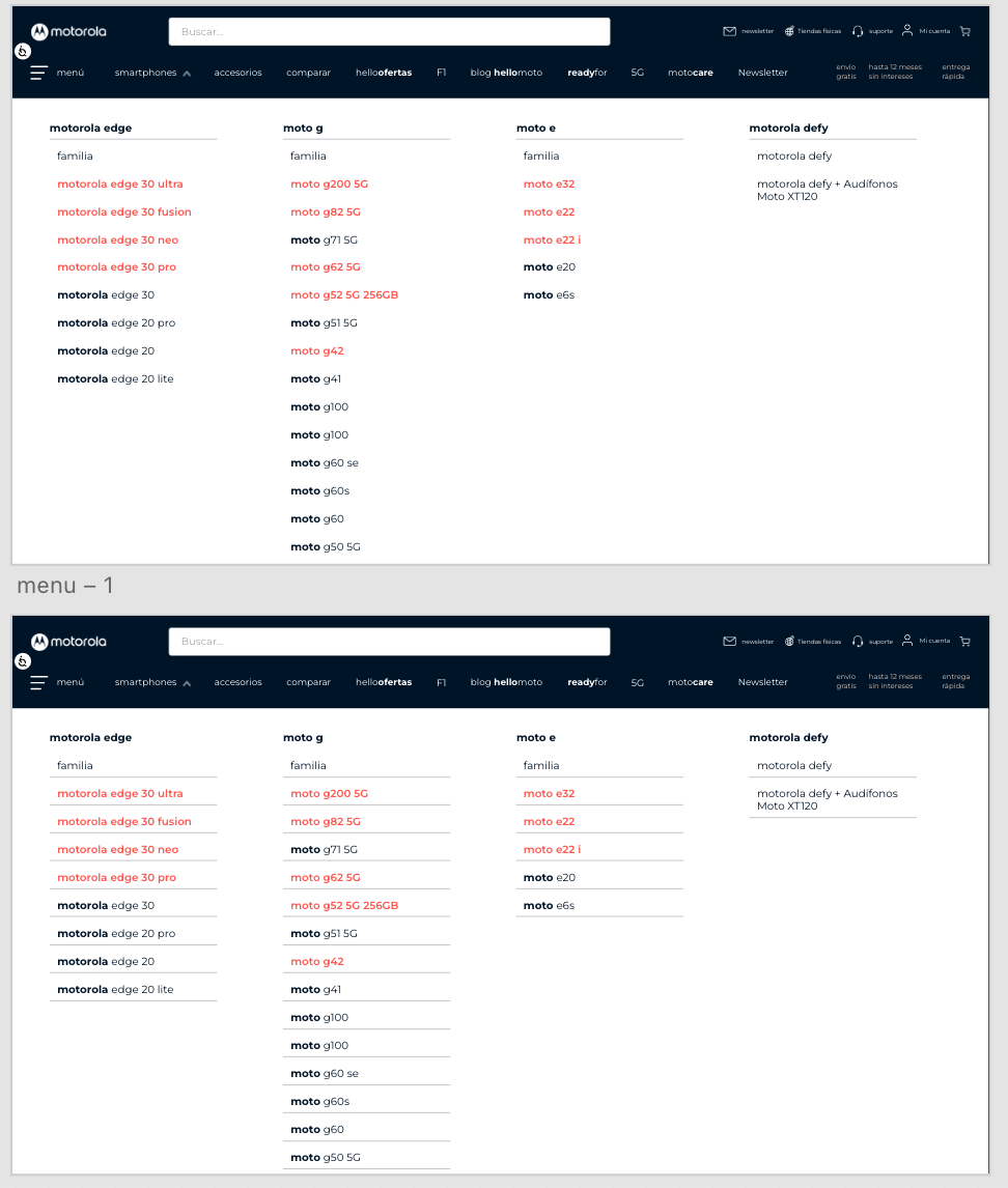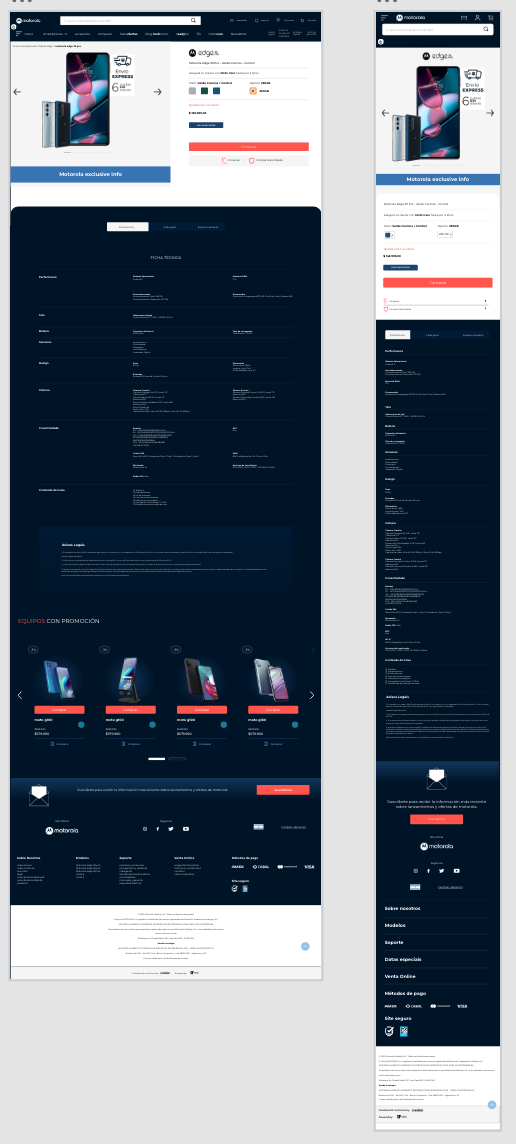 Analicé para todos los países LATAM todo motorola, para las mejoras en cuestión experiencia e interfas: Más de 100 enlaces analizados, todo el contenido que contenía el sitio web, tanto desktop como mobile. Familia razr | Familia Edge | Familia G | Familia E | Accesorios | Entre otros. El ánilisis se entrego en para mobile y desktop colocando el tipo de dispositivo, el sistema operativo y el tamaño de pantalla |